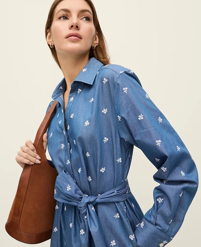 Ann Taylor Petite Collared Floral Shirtdress Winter White Women's