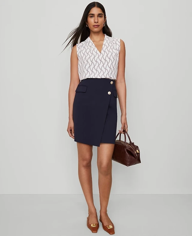 Ann Taylor Chain Link Print Sleeveless Shirt Moonlit Backdrop B Women's