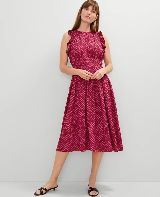 Ann Taylor Petite Ruffle Collar Maxi Flare Dress Size 0 Moroccan Red Women's
