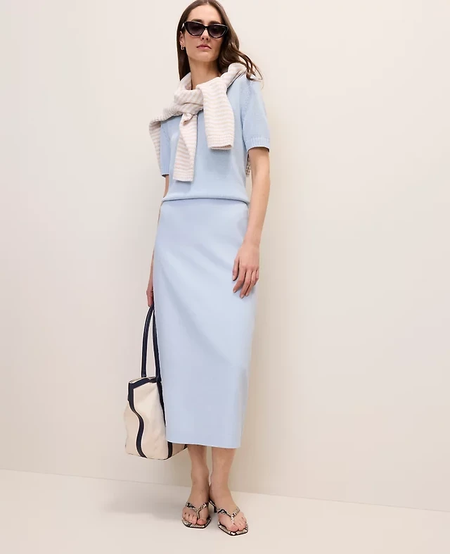 Ann Taylor Embroidered Midi Pencil Skirt Ocean Oasis Women's