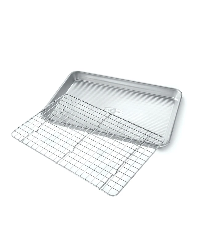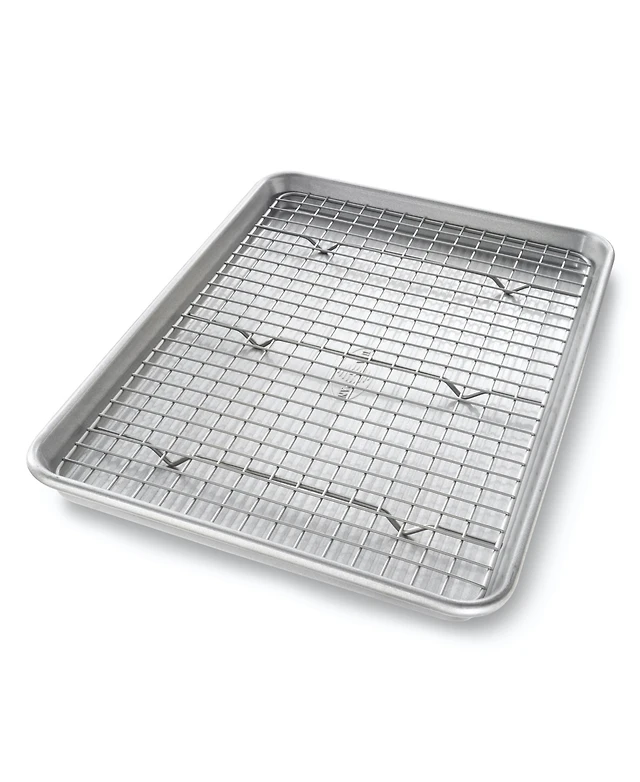 Usa Pan Non-Stick Aluminum 2 Piece Quarter Sheet Pan and Baking Rack Set