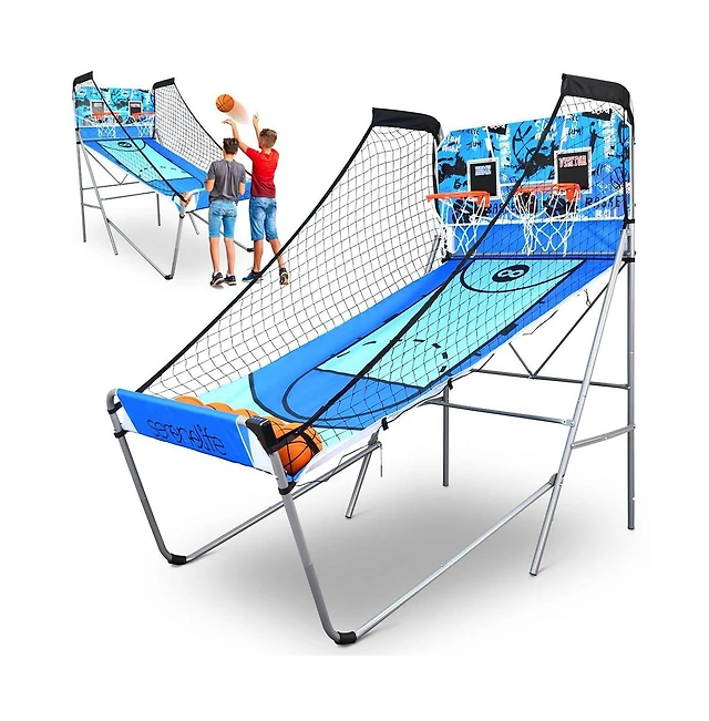 Sugift Foldable Basketball Arcade Game w/Led Scoring, Dual Shot Indoor Hoop Game for 2 Players, Includes 4 Balls