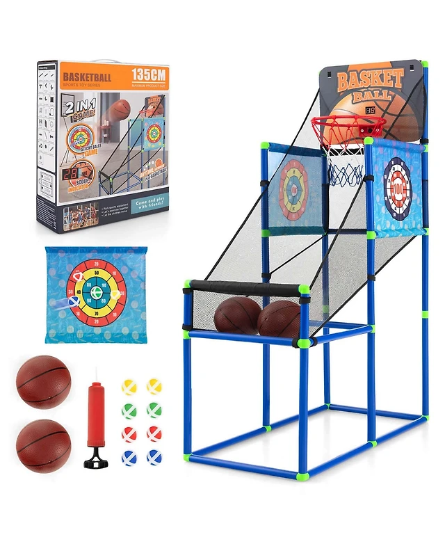 2-in-1 Kids Basketball Arcade & Sticky Balls Game w/Electronic Scoreboard Sound