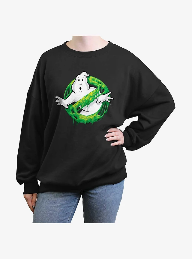 Ghostbusters Green Slime Logo Girls Oversized Sweatshirt