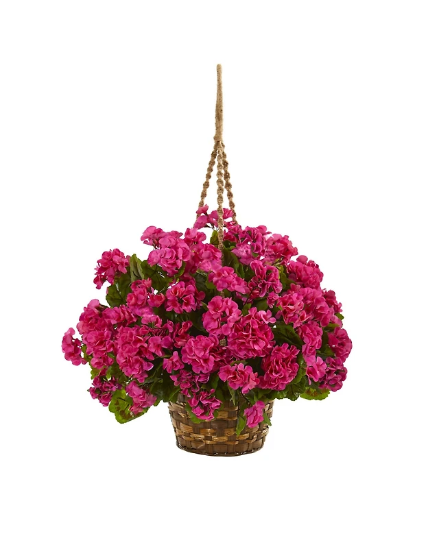 Nearly Natural Geranium Hanging Basket Artificial Plant Uv Resistant