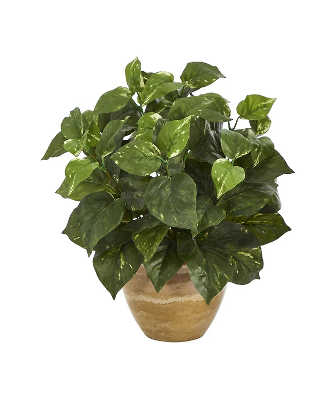 Monarch Specialties 13" Indoor Artificial Epipremnum Plants with Decorative Black Pots, Set Of 2