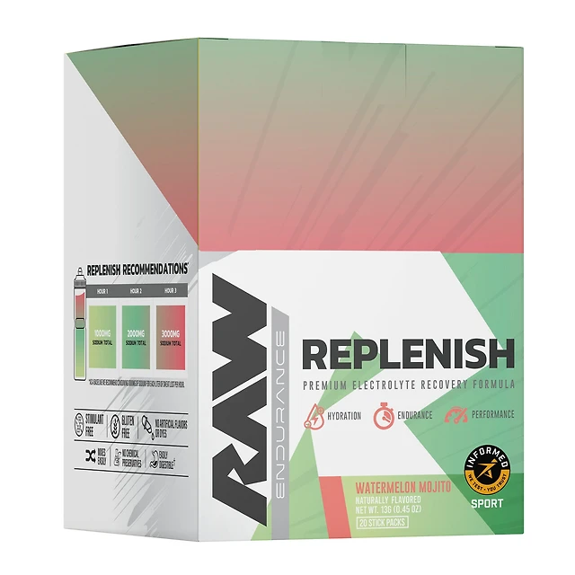 Raw Nutrition Replenish Premium Electrolyte Recovery Healthy - Watermelon Mojito (20 Stick Packs)