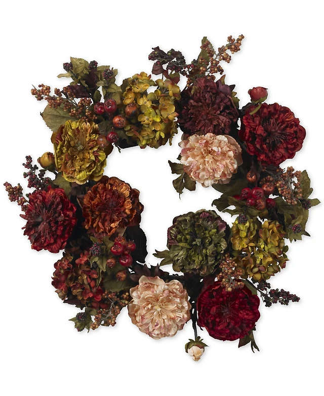Nearly Natural 22" Autumn Hydrangea & Peony Wreath
