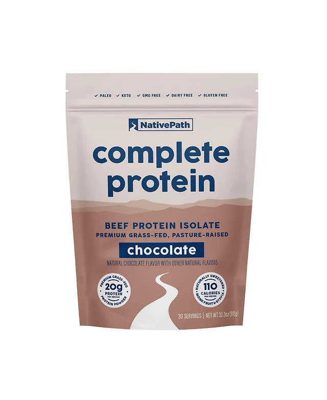 NativePath Complete Beef Protein Powder Isolate – 20g Protein, Chocolate Flavor, 30 Servings