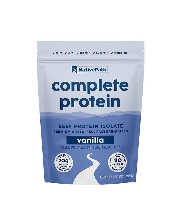 NativePath Complete Beef Protein Powder Isolate – 20g Protein, Vanilla Flavor, 30 Servings