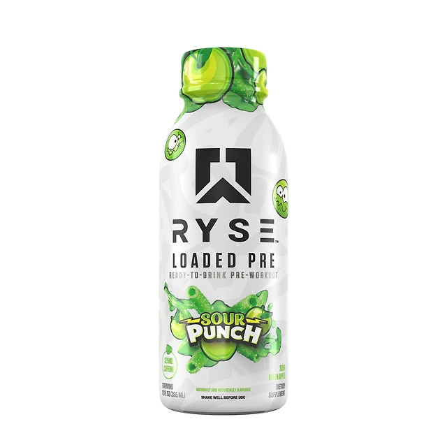 RYSE Loaded Pre-Workout Rtd - Sour Punch Green Apple 12 Fl Oz (12 Bottles)