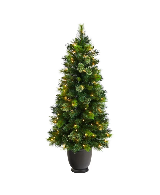 Oregon Pine Artificial Christmas Artificial in Decorative Planter with 250 Bendable Branches and 100 Warm Lights, 4.5'
