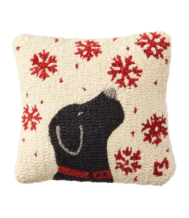 Wool Hooked Throw Pillow, Snowflake Black Lab, 14" x 14"