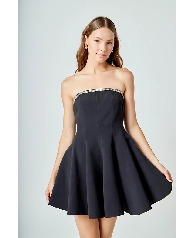 endless rose Women's Jewel Trim Flounced Mini Dress