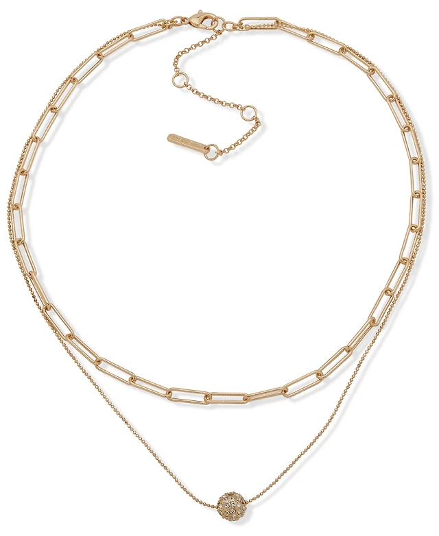 Nine West Glass Stone Gold-Tone Two-Row Necklace