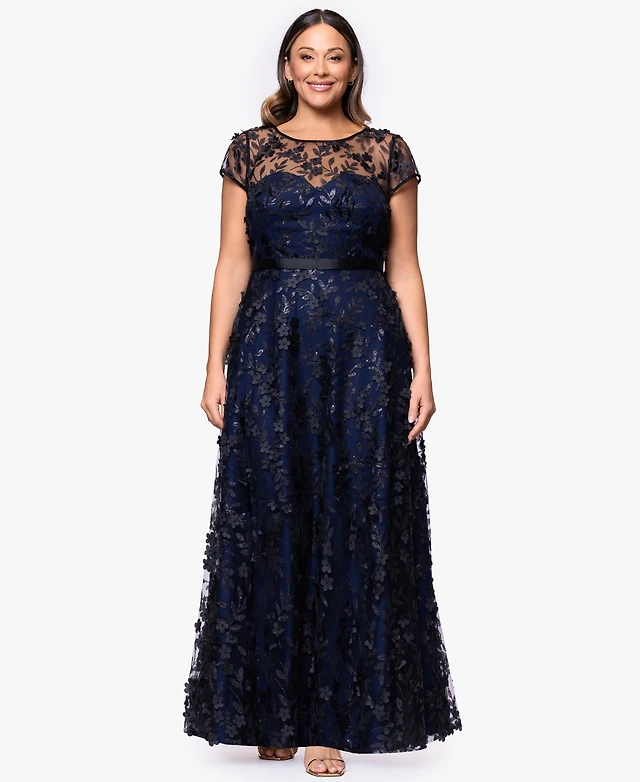 Betsy & Adam Plus Asymmetrical Neck Ball Gown