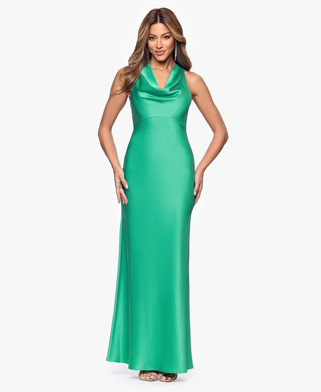 Betsy & Adam Petite Cowl Neck Long Ball Gown
