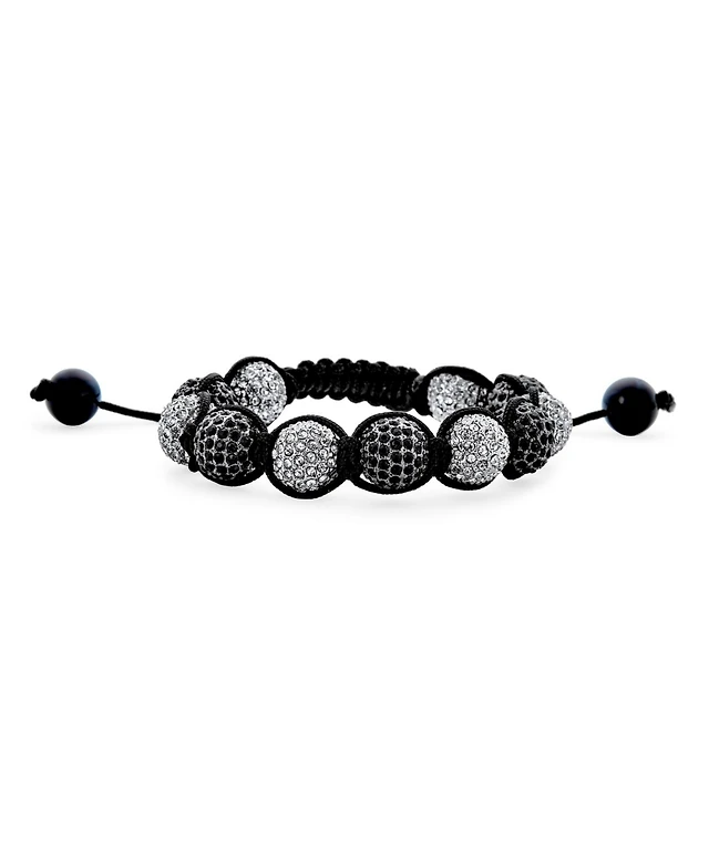 Bling Jewelry Black Blue White Gold Tone Strand Bracelet with Pave Crystal Disco Ball