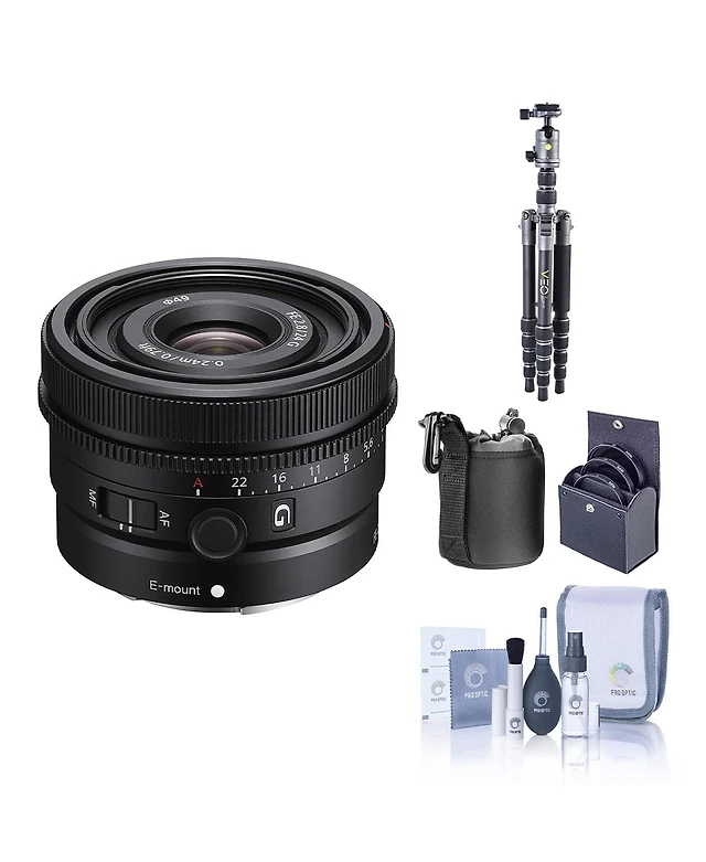 Sony Fe 24mm f/2.8 G Lens for Sony E, Bundle with Veo 3 Go 235AB 23mm 5-Section Aluminum Travel Tripod with T-50 Ball Head, 49mm Filter Kit, Cleaning