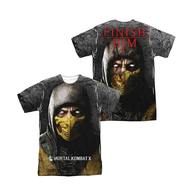 Mortal Kombat X Mens Finish Him (Front/Back Print) Long Sleeve Adult Poly Crew Tee / T-Shirt