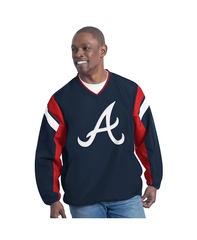 G-iii Sports by Carl Banks Men's Navy Atlanta Braves Double Coverage V-Neck Pullover Hoodie