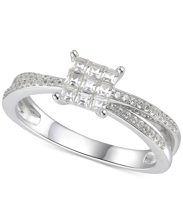 White Lab-Created Sapphire & Diamond Promise Ring Sterling Silver