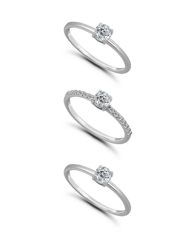 Macy's 7/8 cttw 3pc Set- Pave Cubic Zirconia Diamond Shape Design on Pave/Polish Combo 4mm Band Ring