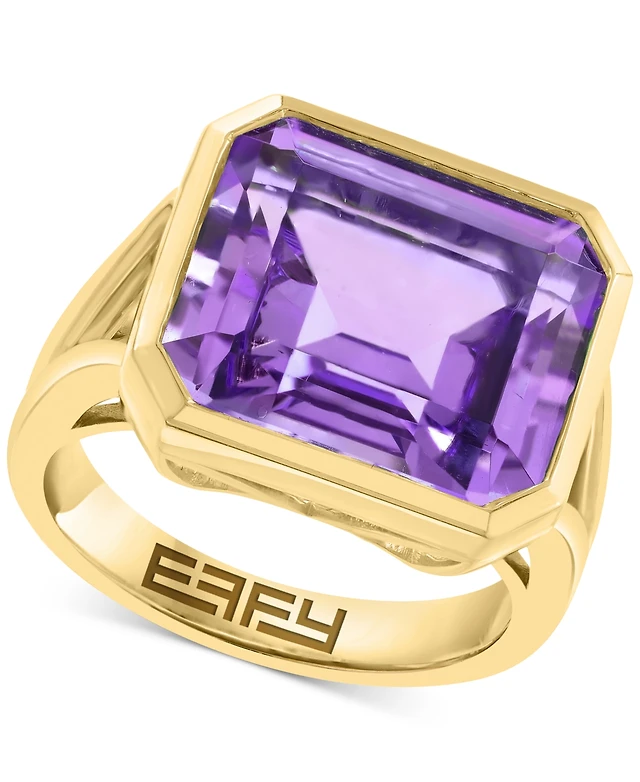 Effy Green Quartz Emerald-Cut Solitaire Ring (10-1/2 ct. t.w.) 14k Gold-Plated Sterling Silver (Available Amethyst)