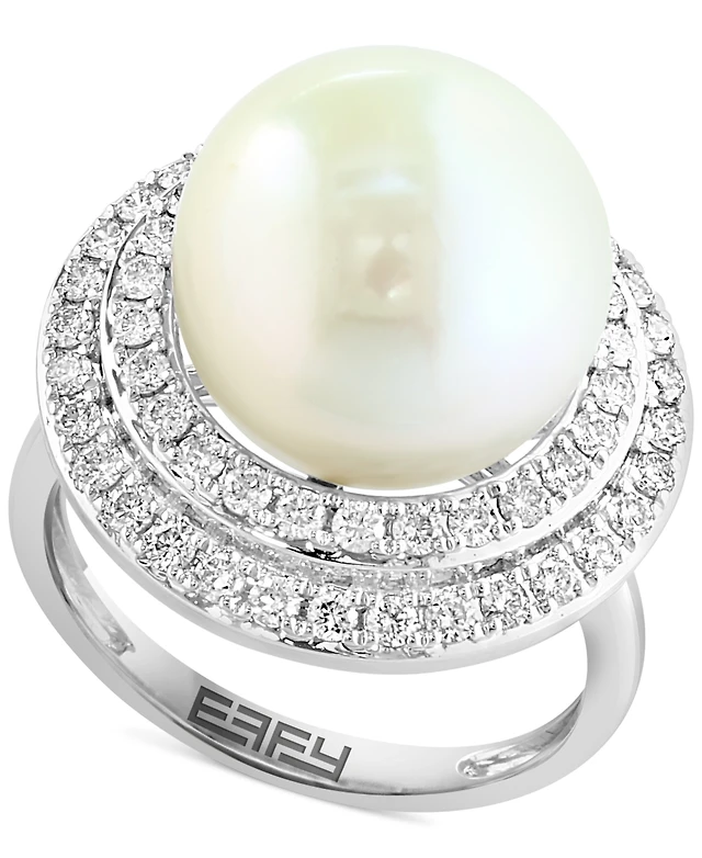 Effy Cultured Freshwater Pearl (13mm) & Diamond (7/8 ct. t.w.) Ring in 14k White Gold