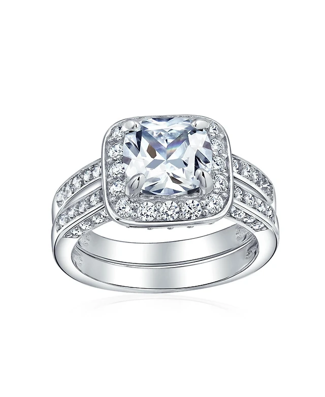 Bling Jewelry 2CT Cushion Cut Cz Promise Ring in Sterling Silver with Three-Sided Double Pave Band