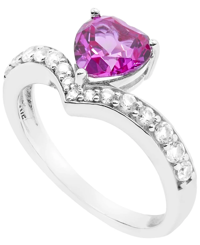 8.0mm Heart-Shaped Amethyst and White Lab-Created Sapphire Ring in Sterling Silver with Rose Rhodium