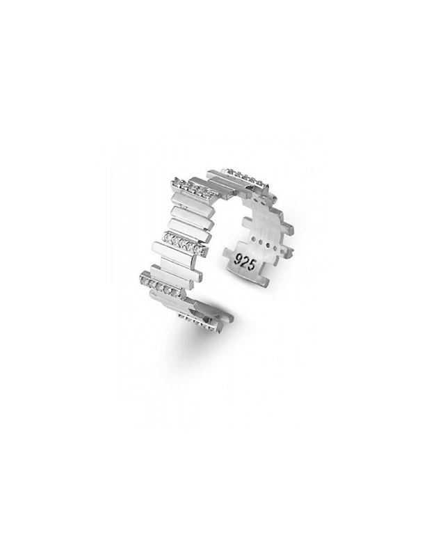 Spero London Lined Stones Marquise Sterling Silver Ring
