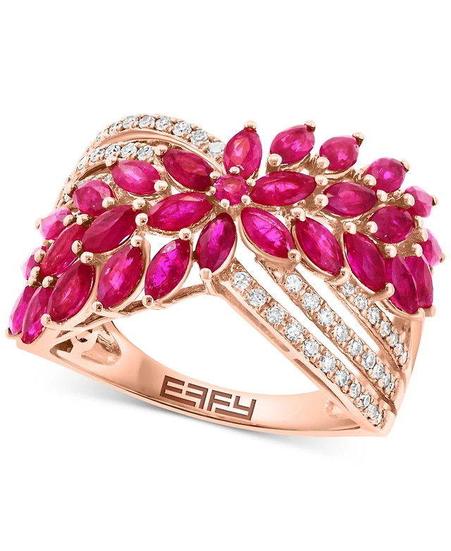 Effy Ruby (2-3/8 ct. t.w.) & Diamond (5/8 ct. t.w.) Flower Crossover Ring in 14k Rose Gold