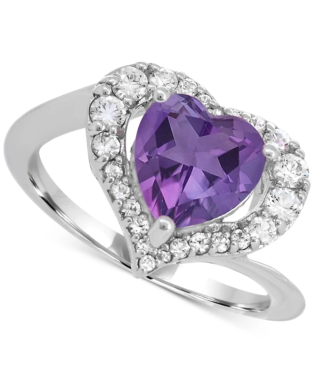 Amethyst & White Lab-Created Sapphire Ring Sterling Silver