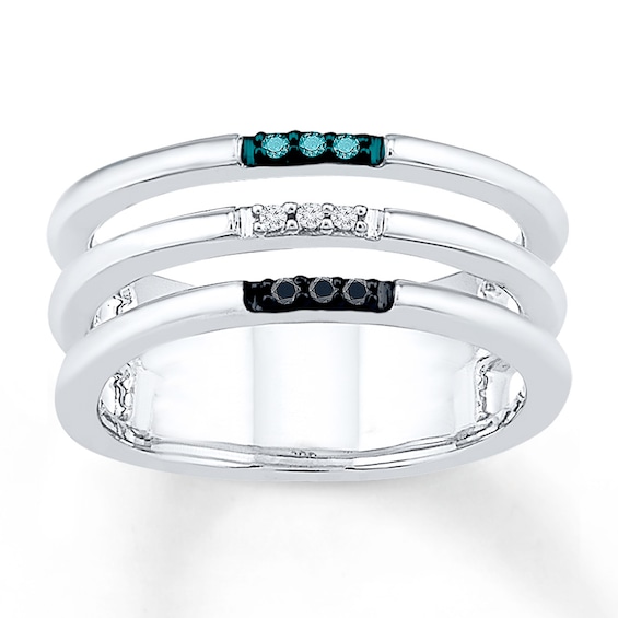 Diamond Midi Ring Blue/Black/White Sterling Silver