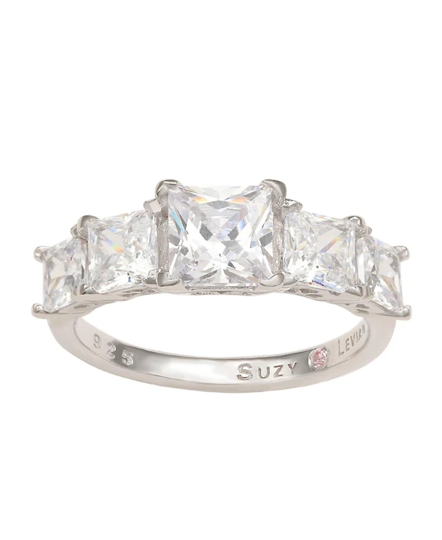 Suzy Levian Sterling Silver Cubic Zirconia 5-Stone Princess-cut Bridal Ring