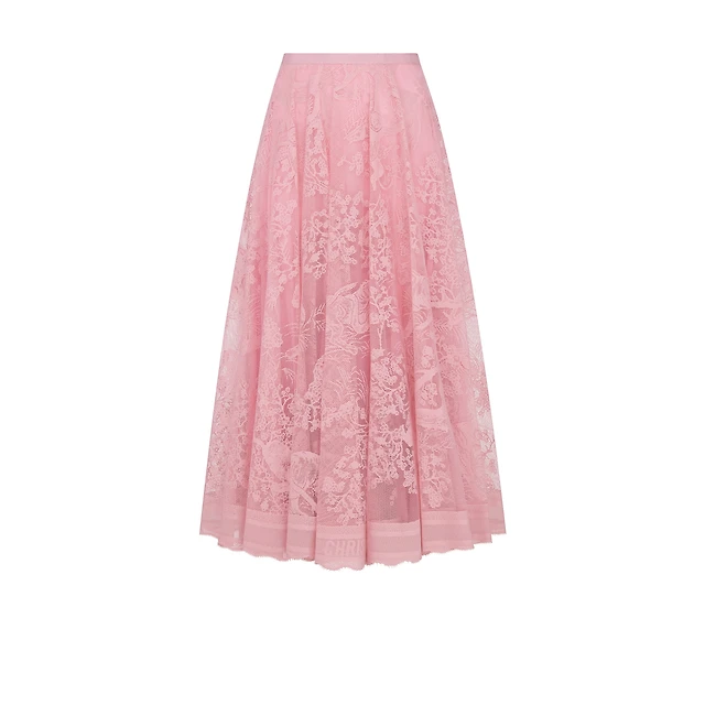 Mid-Length Pleated Embroidered Skirt