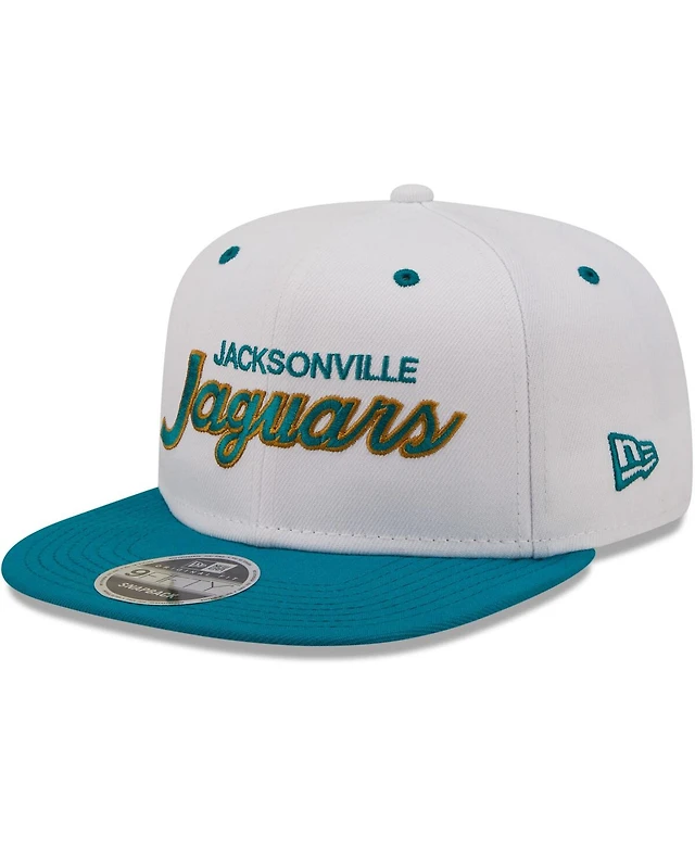 Men's New Era White, Teal Distressed Jacksonville Jaguars Sparky Original 9FIFTY Snapback Hat