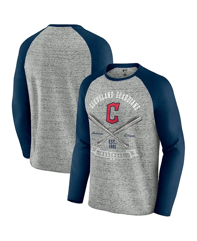 Fanatics Men's Heather Gray Cleveland Guardians Raw Edge Raglan Long Sleeve Baseball T-Shirt