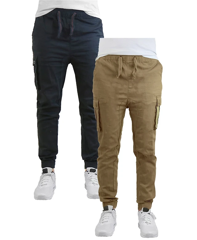 Galaxy By Harvic Men's Cotton Stretch Twill Cargo Joggers, Pack of 2
