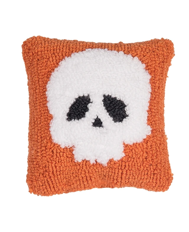 Skull Motif Mini Throw Pillow Hooked Halloween Accent Pillow 8" x 8"