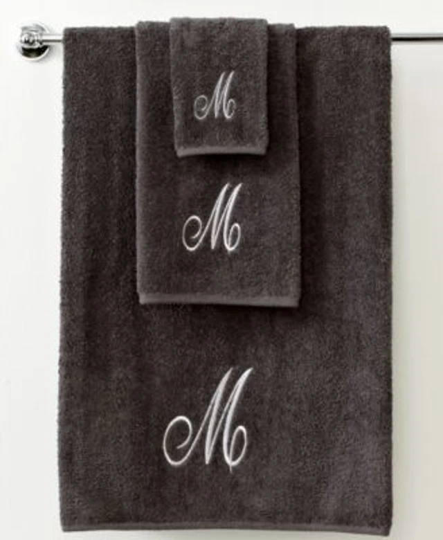Avanti Monogram Initial Script Granite Silver Bath Towels
