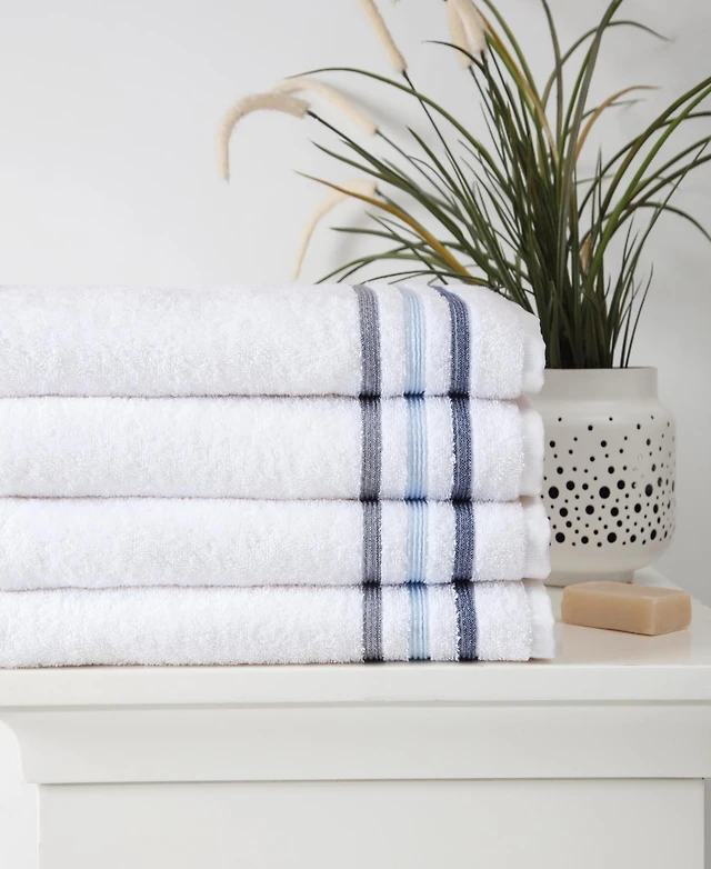 Aston and Arden Luxury White/Ombre Stripe 6-Piece Bath Towel Set, 600 Gsm, Soft 100% Turkish Cotton Bathroom Towels, Made in Turkey, 2 Bath Towels, 2