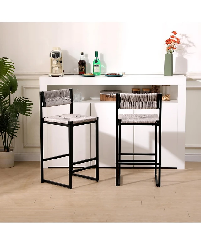 gaomon Set of 2 Ergonomic 24" Counter Height Bar Stools with Curved Pu Leather Seat, Metal Frame, Integrated Footrest