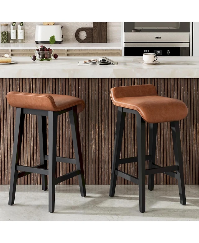 Counter Height Bar Stools Set of 2, 24 Inch Barstools for Kitchen Island Counter, Upholstered Padded Barstools with Curved Surface