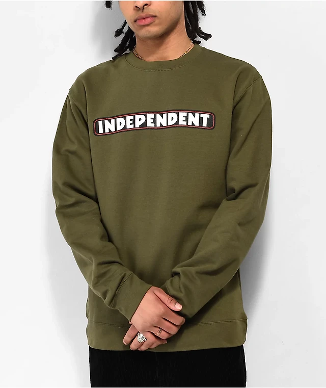 Independent Bar Logo Army Green Crew Socks