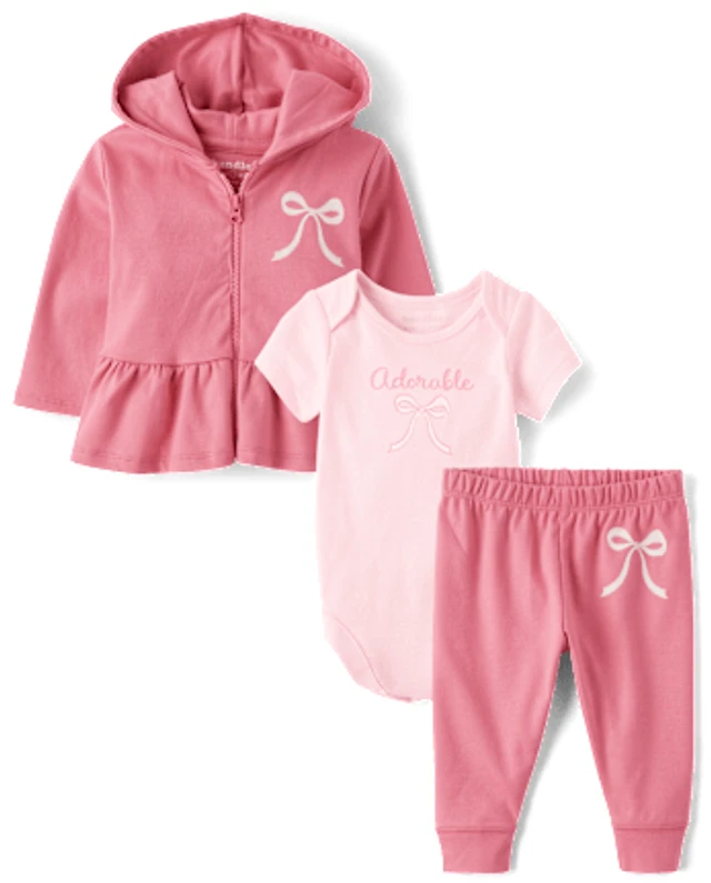 Disney Baby Girls Minnie Mouse Hooded Jacket, Bodysuit & Pants Set