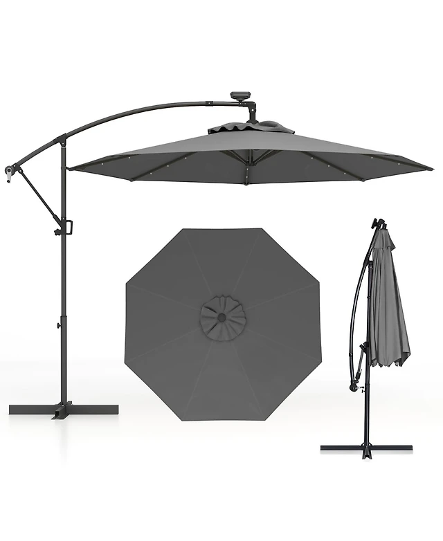 10FT Cantilever Solar Powered 32LED Lighted Patio Offset Umbrella Outdoor