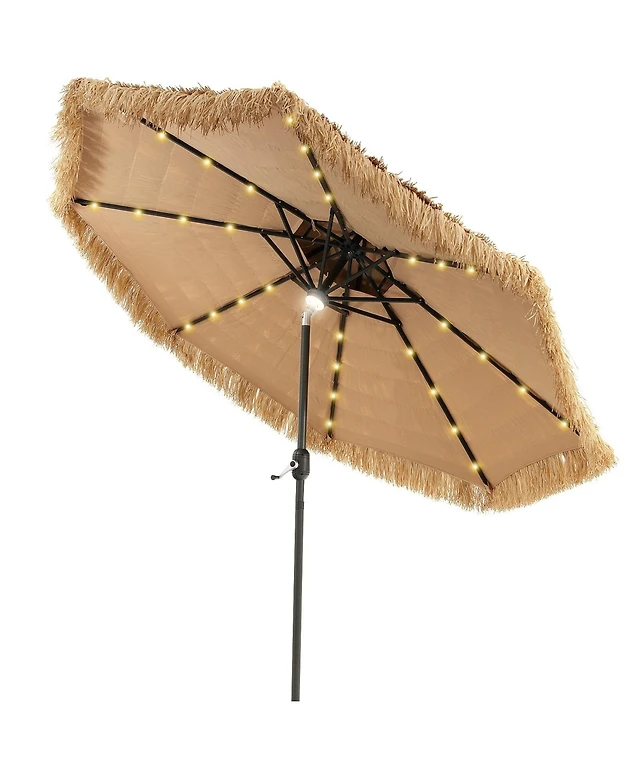 9 ft. Patio Solar Power Led lights Market Umbrella with Black Round Base
