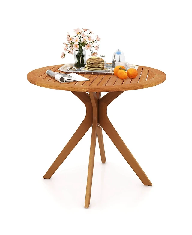 35.5 Inch Patio Wood Dining Table with Slatted Tabletop & Curved Legs for Backyard